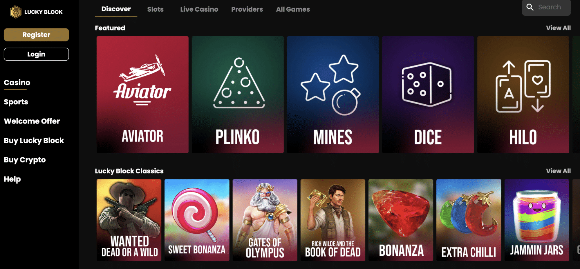 5. Lucky Block – Lucky Block offers a modern crypto gambling experience, combining fairness, big jackpot games, and Cash App compatibility with ease.